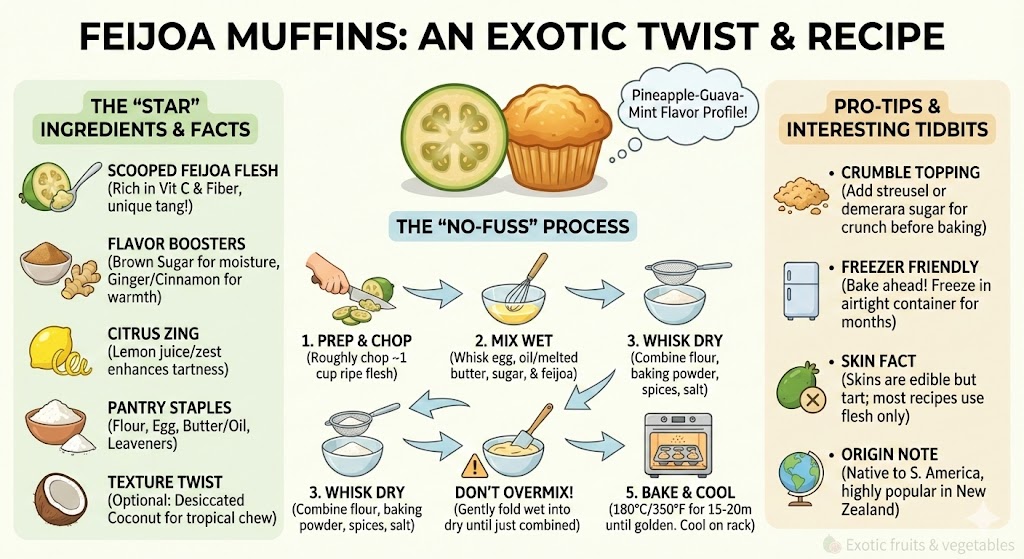 The answer, I have found after years of trial and significant error, is baking. Specifically, feijoa muffins. This isn’t just a way to use up excess fruit; it is the best way to translate that complex, gritty, aromatic flavor profile into something approachable for people who might be scared of the raw fruit’s jelly-like texture. The heat of the oven mellows the medicinal notes that turn some people off, leaving behind a fragrant, moist crumb that rivals any banana bread you have ever tasted.